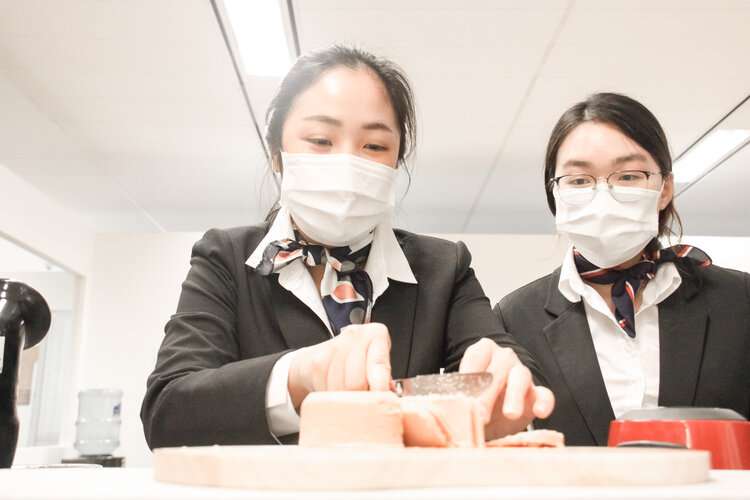 Yuan Hsiang Chang (left) engaging in learning activities at International Hotel and Tourism Management Advanced Diploma programme in Singapore